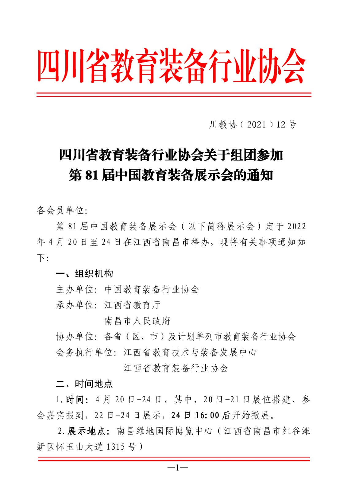 四川省教育装备行业协会关于组团参加第81届中国教育装备展示会的通知