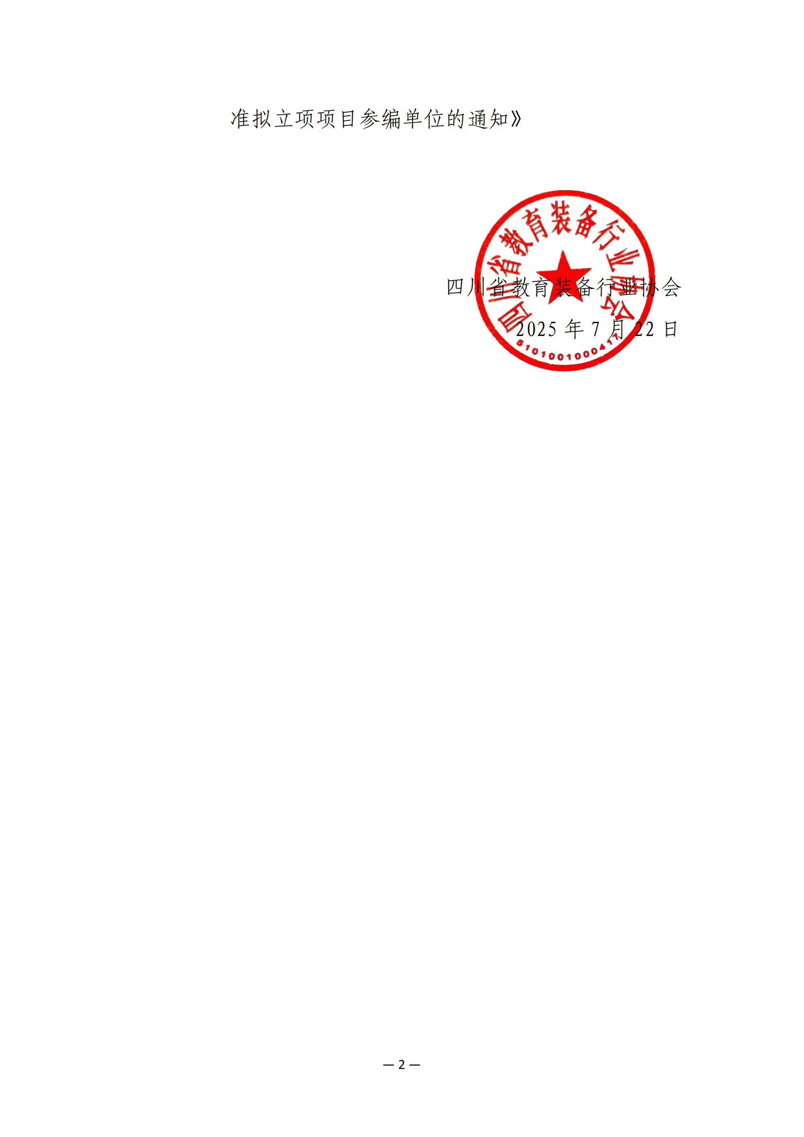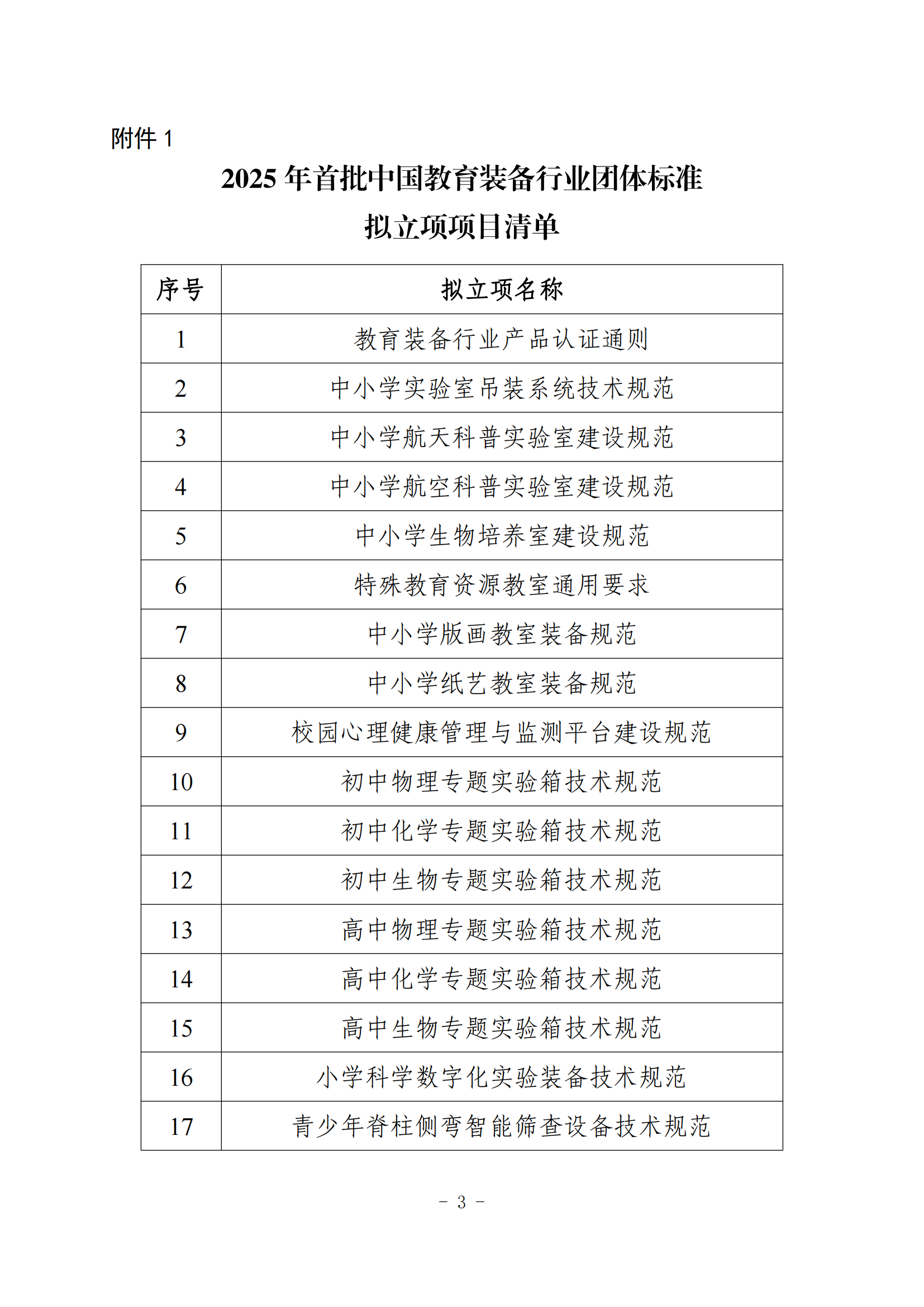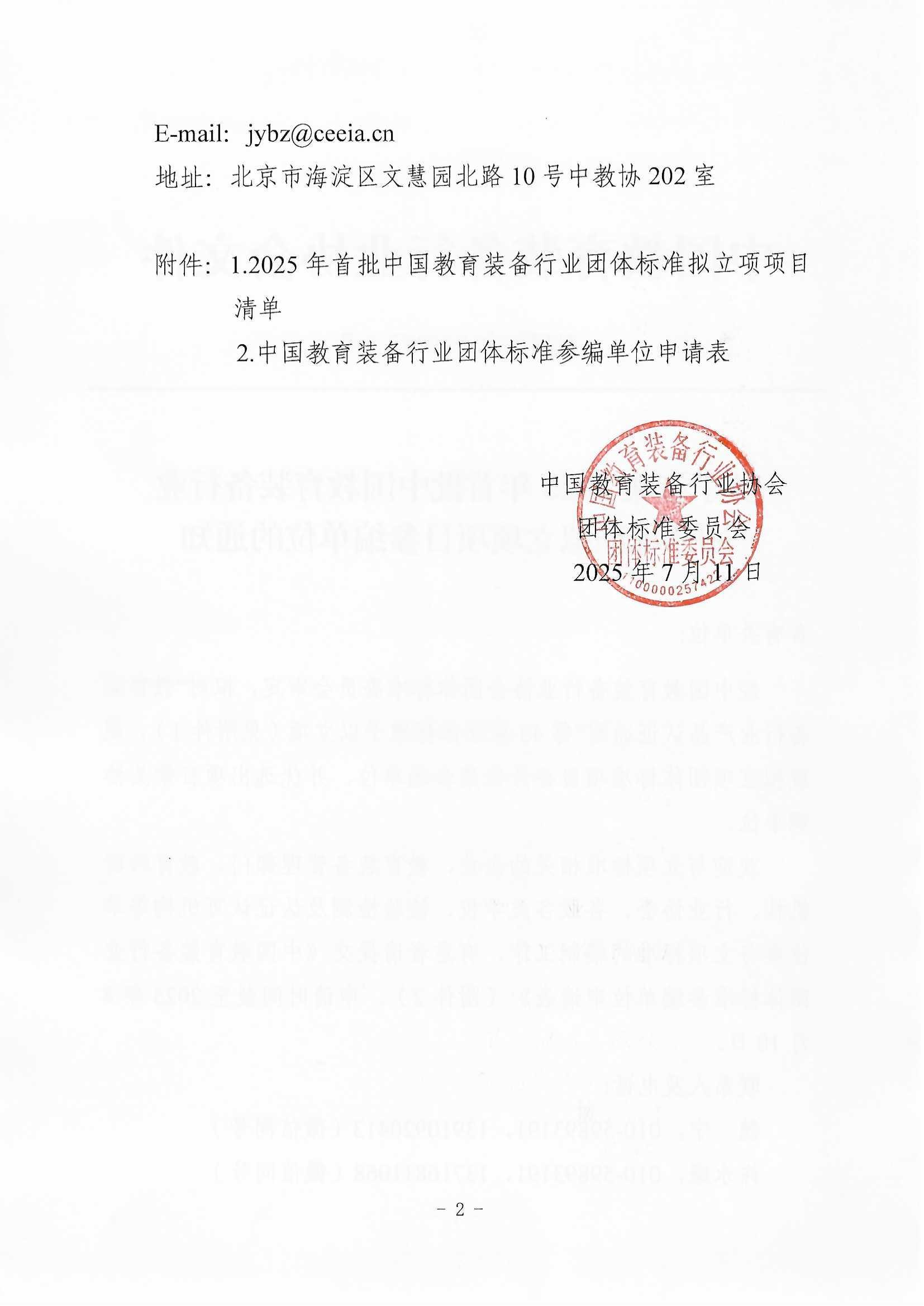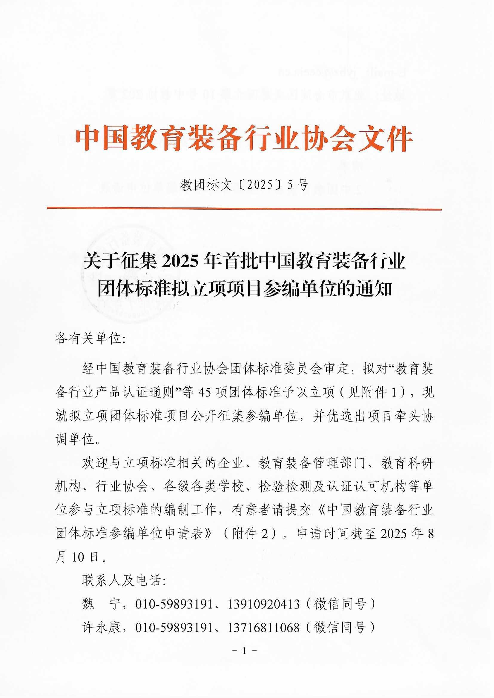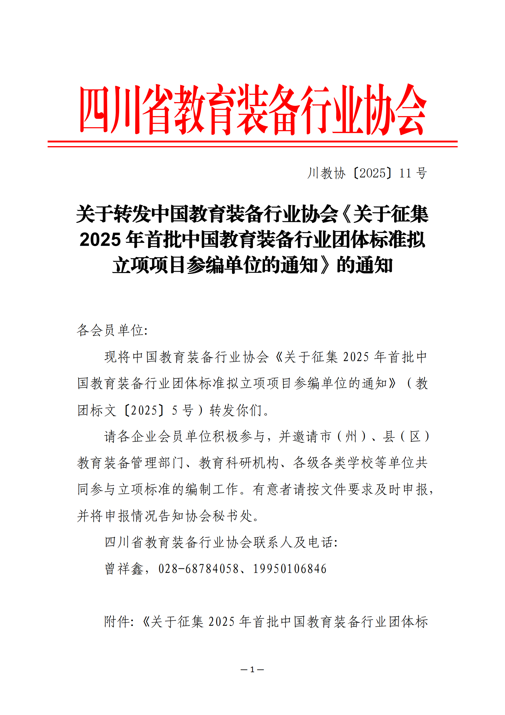关于转发中国教育装备行业协会《关于征集2025年首批中国教育装备行业团体标准拟立项项目参编单位的通知》的通知