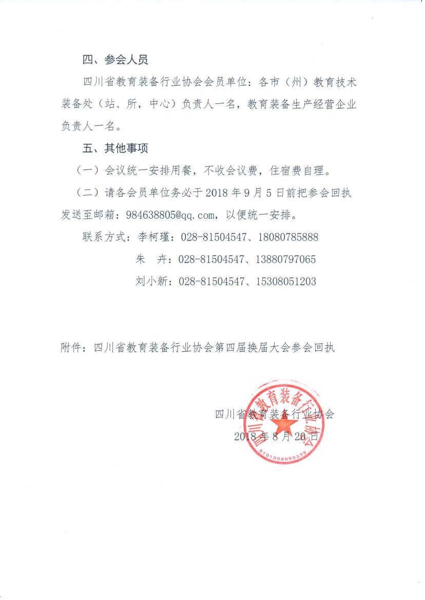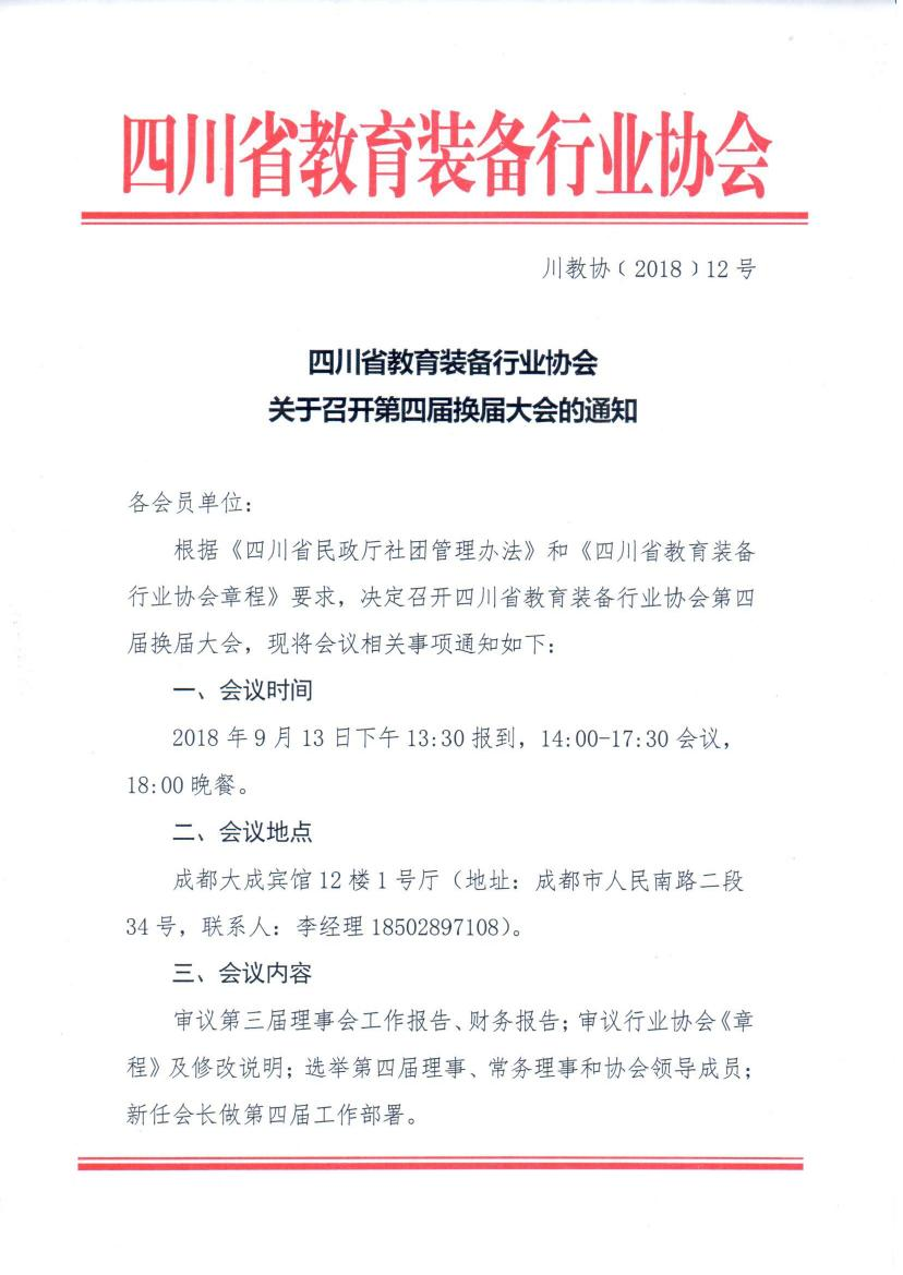 四川省教育装备行业协会关于召开第四届换届大会的通知
