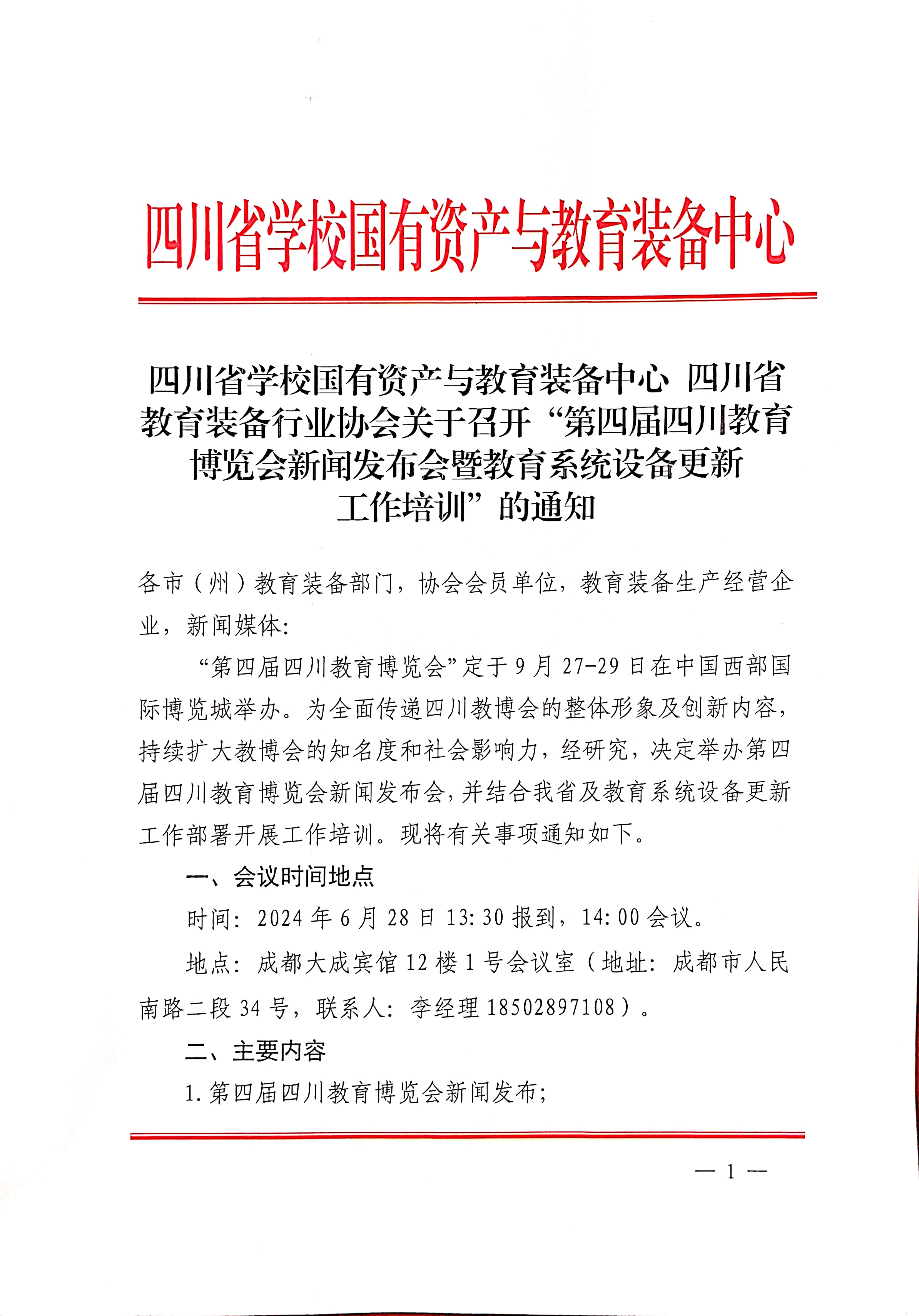 关于召开“第四届四川教育博览会新闻发布会暨教育系统设备更新工作培训”的通知