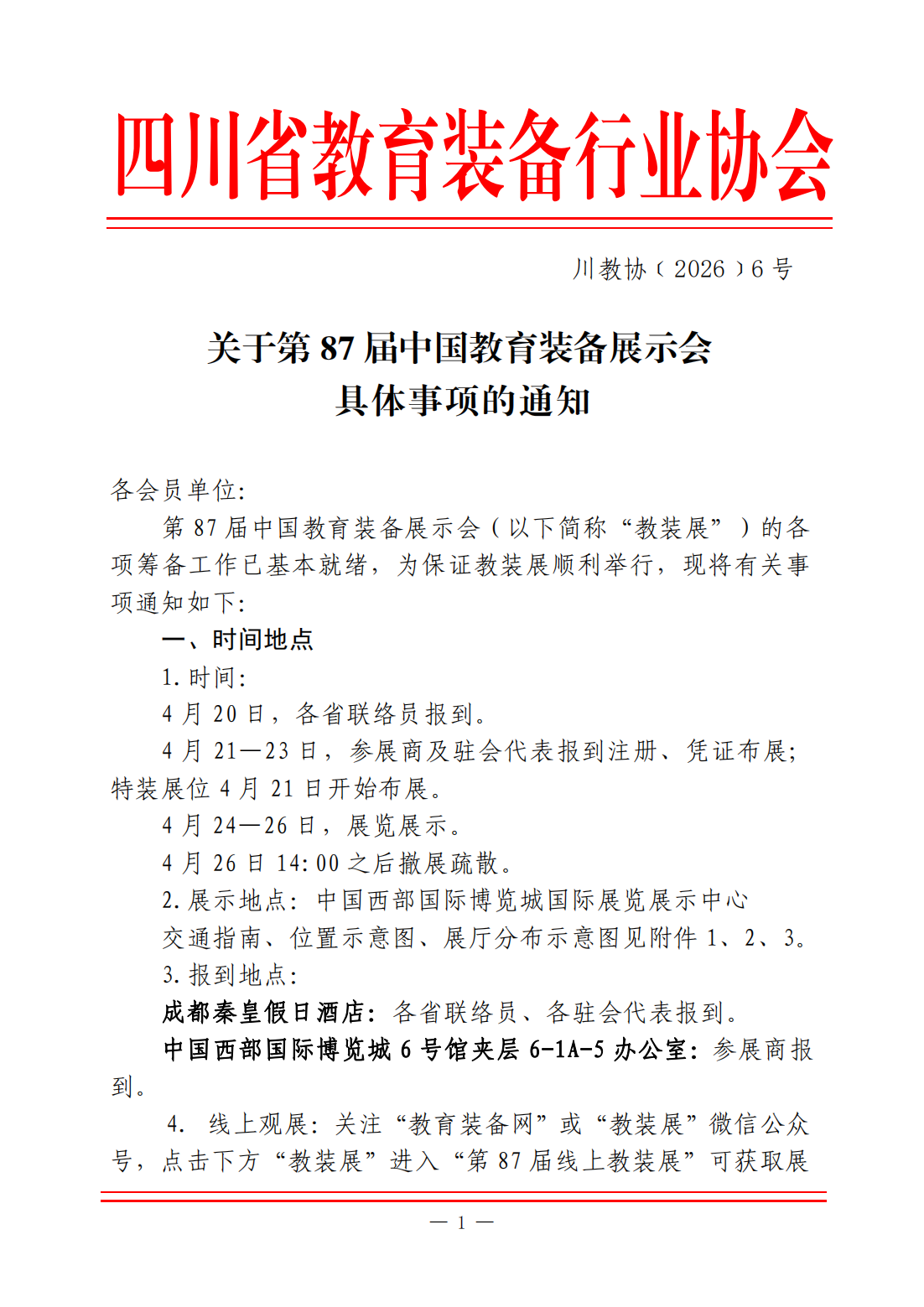 四川省教育装备行业协会 关于第87届中国教育装备展示会具体事项的通知