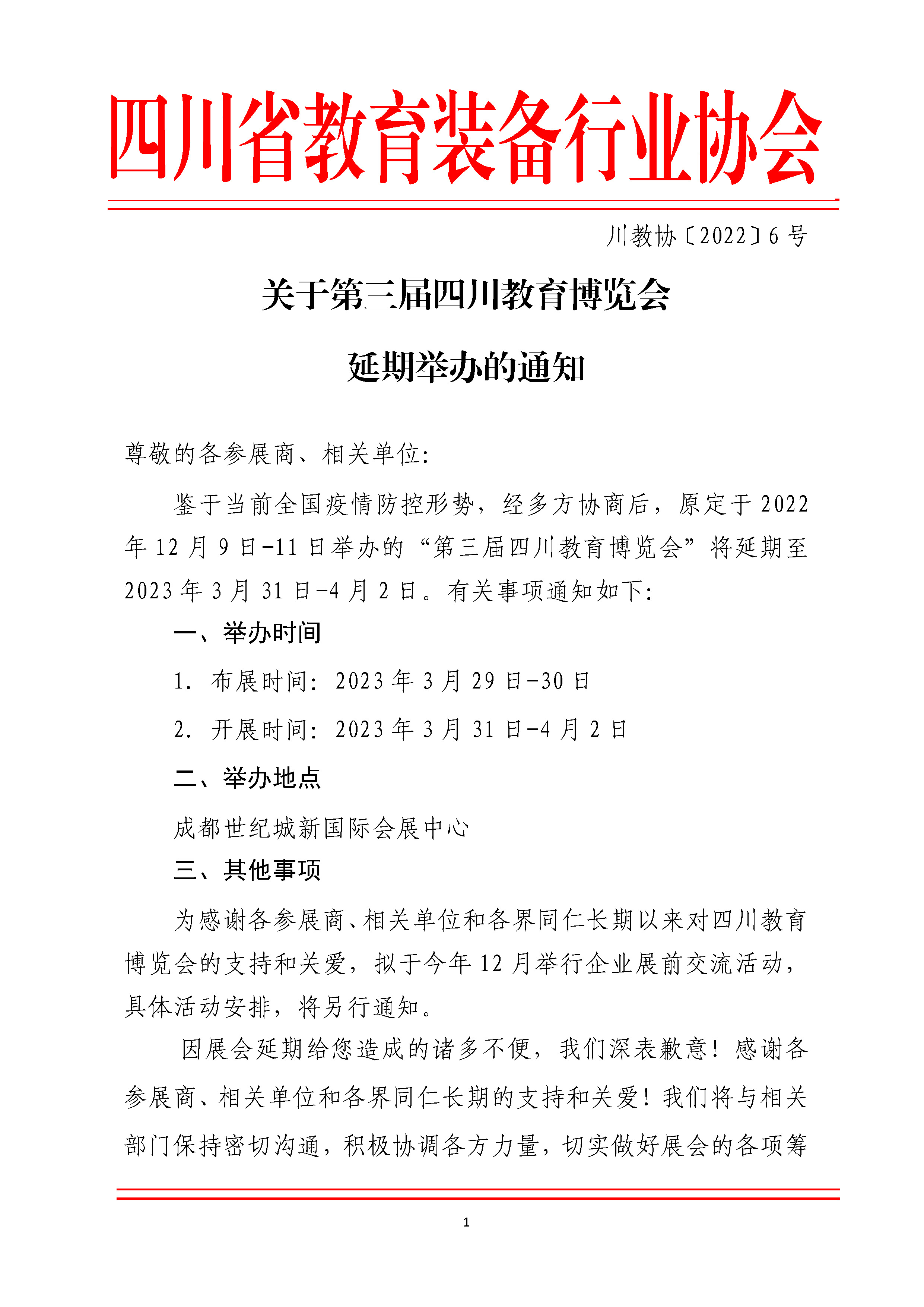 四川省教育装备行业协会关于举办第三届四川教育博览会的预通知