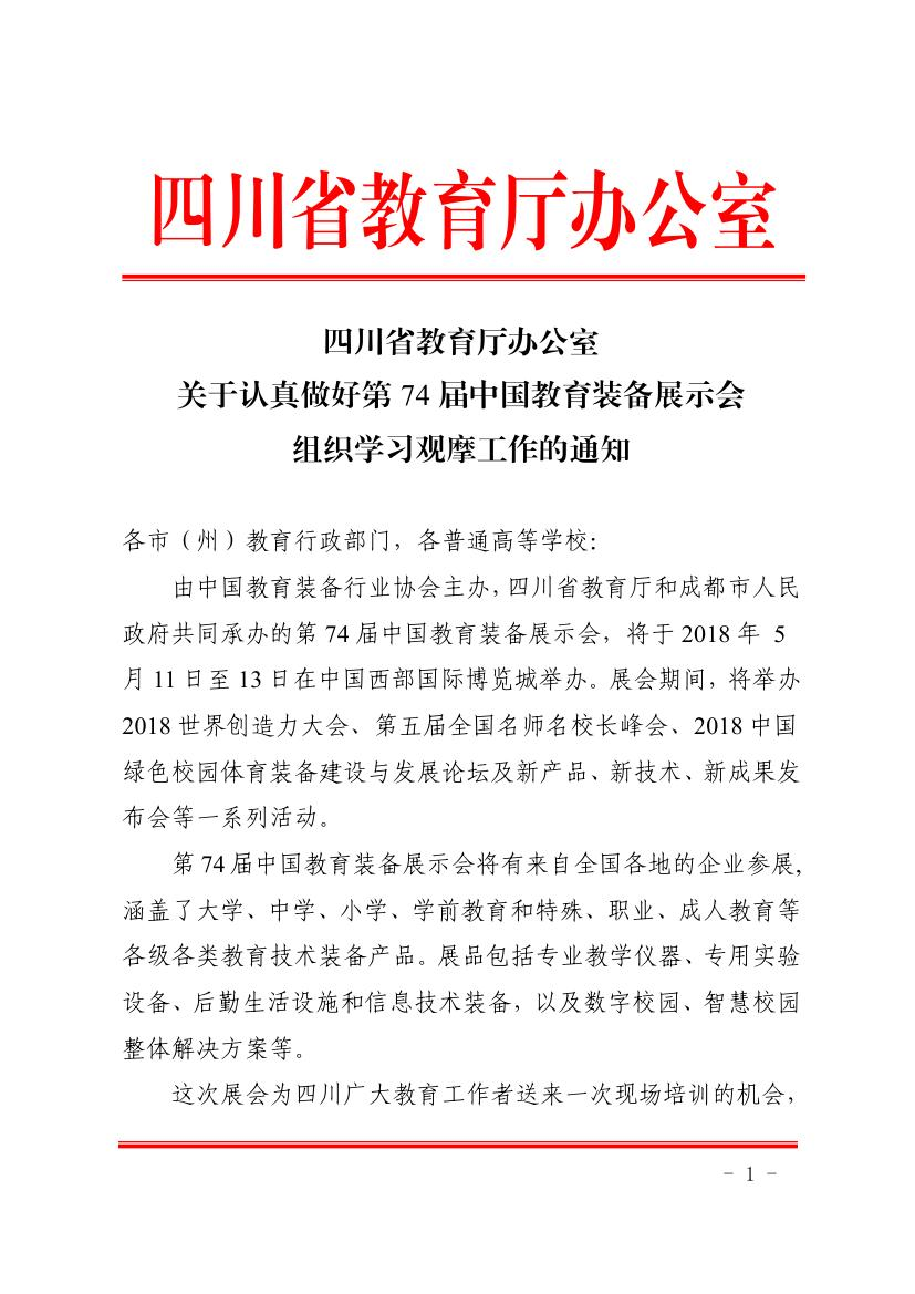 四川省教育厅办公室关于认真做好第74届中国教育装备展示会组织学习观摩工作的通知