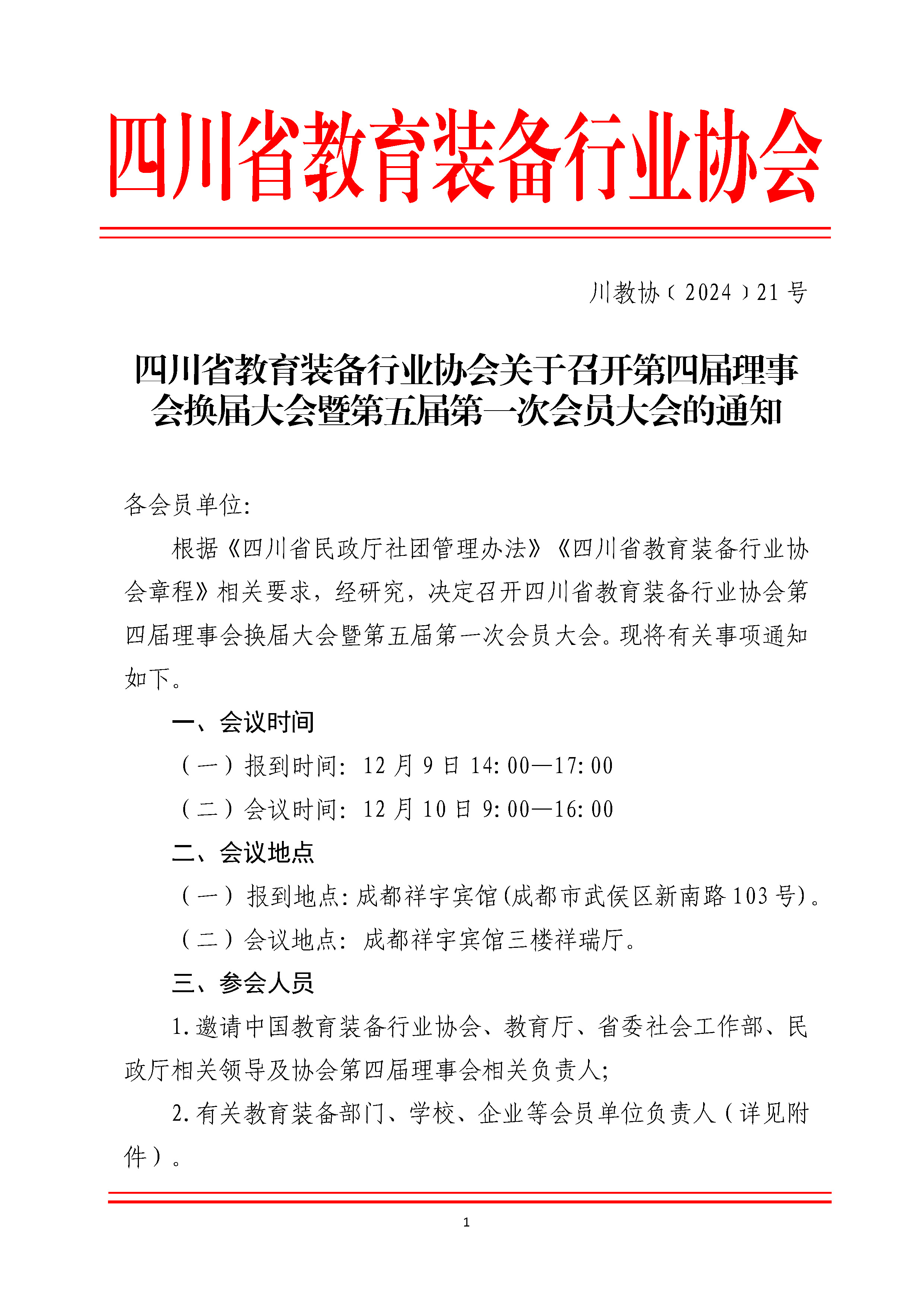 四川省教育装备行业协会关于召开第四届理事会换届大会暨第五届第一次会员大会的通知