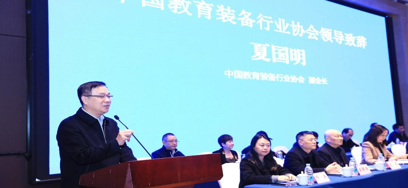 中国教育装备行业协会常务副会长夏国明对四川省教育装备行业协会第四届理事会换届大会暨第五届第一次会员大会的召开表示热烈祝贺,对四川省教育装备行业协会近年来开展的工作予以了充分肯定,从加强协会党建引领、深化认识教育装备内涵、不忘服务教育的初心、规范协会管理等四个方面,对四川省教育装备行业协会提出了期望和要求。