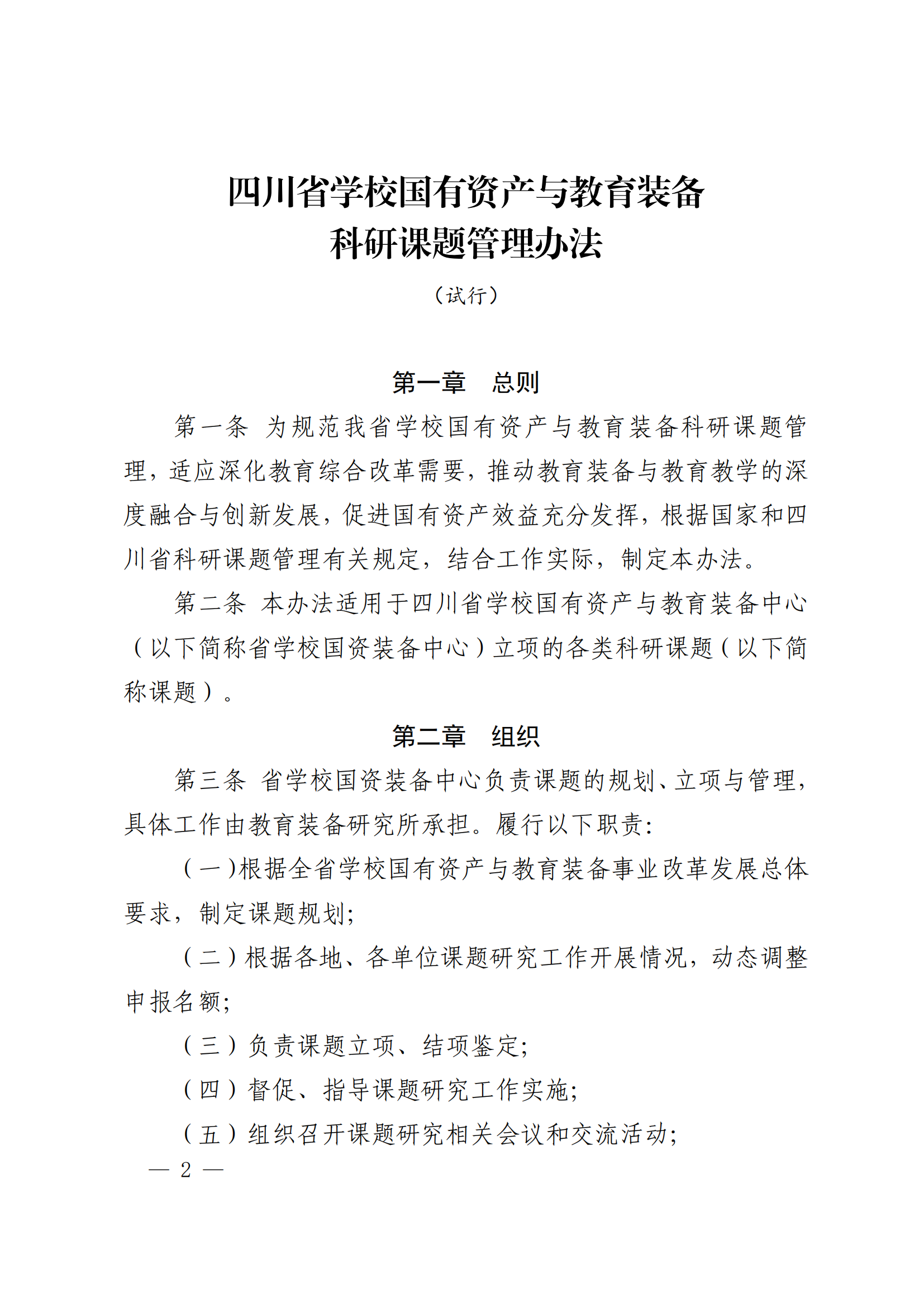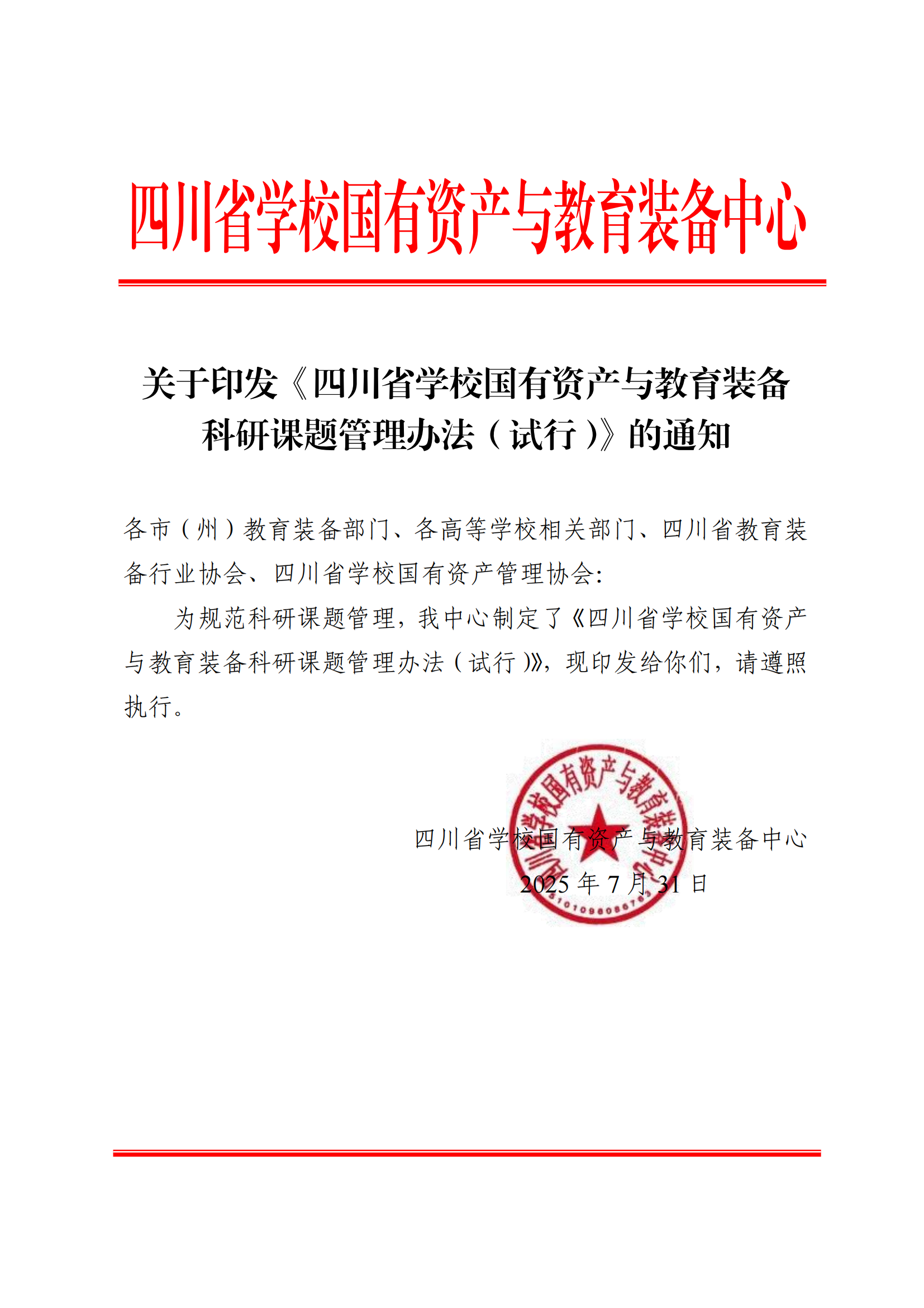 关于印发《四川省学校国有资产与教育装备科研课题管理办法(试行)》的通知
